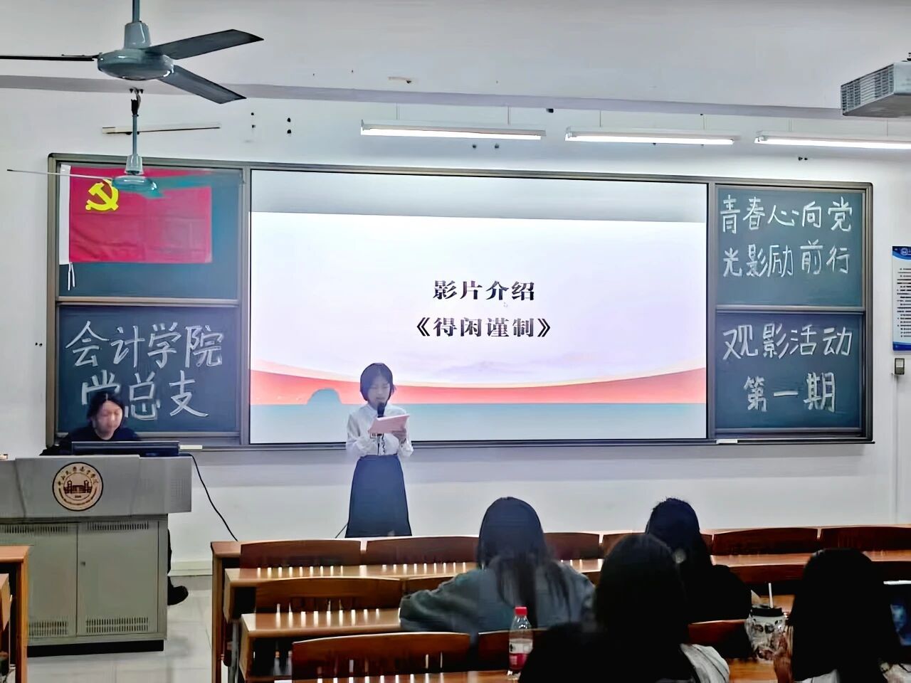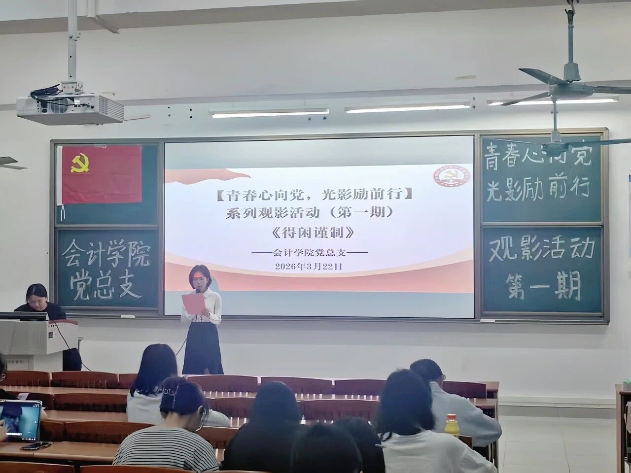 韶华新起,为加强学生居安思危意识,厚植爱国主义情怀,2026年3月22日晚上,会计学院党总支在5教301教室,组织同学们集中观看抗日战争题材影片《得闲谨制》。