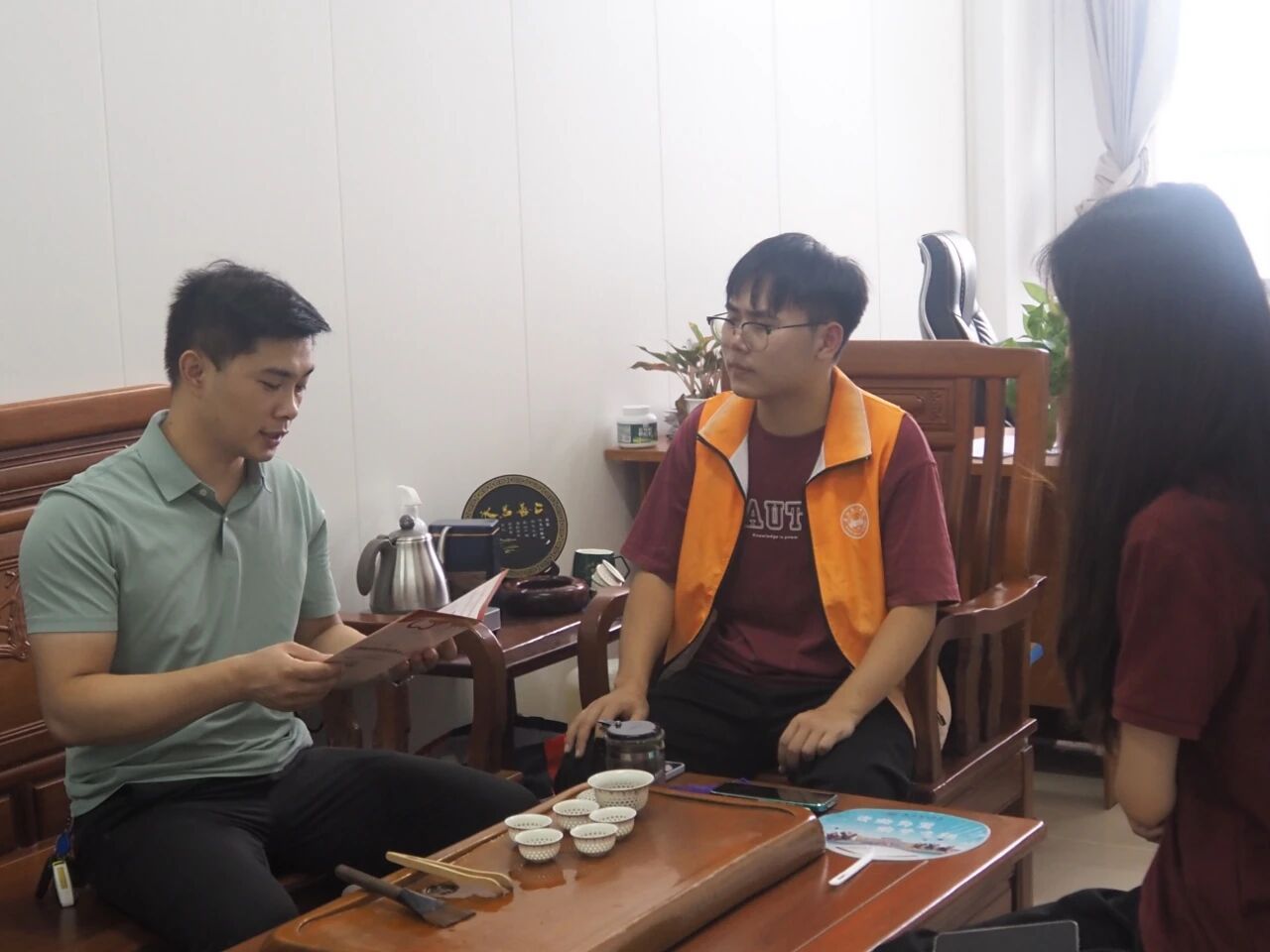小队队员代表首先对梅峰中学团委书记邱钦丰同志进行采访,精准宣讲国家资助政策的核心内容,阐释其助力当地学子圆梦学业的重大意义。紧接着,在邱书记的引导下,队员们沉浸式感受校园,聆听校园的红色文化,领略卓越育人成就。此次访谈与参观,不仅加深了小队对校情学情的理解,更在交流中凝聚了校地协同、共育英才的共识。