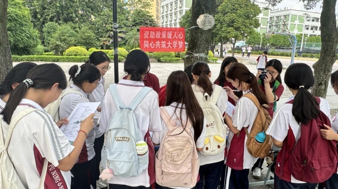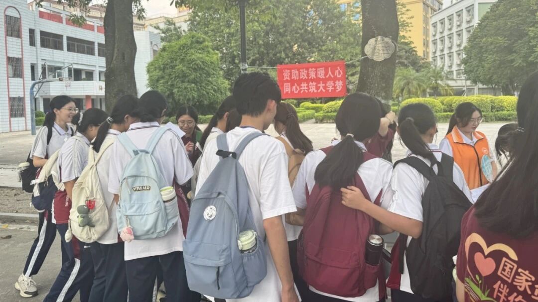 7月7日,广州南方学院“百千万工程”突击队会计学院潮韵振兴小队整装待发,开启资助政策宣传的新征程。今天,他们肩负着新的使命,化身为国家资助政策的“宣传使者”,深入普宁市梅峰中学,将国家资助的曙光播撒校园,为莘莘学子的梦想征途铺路搭桥。