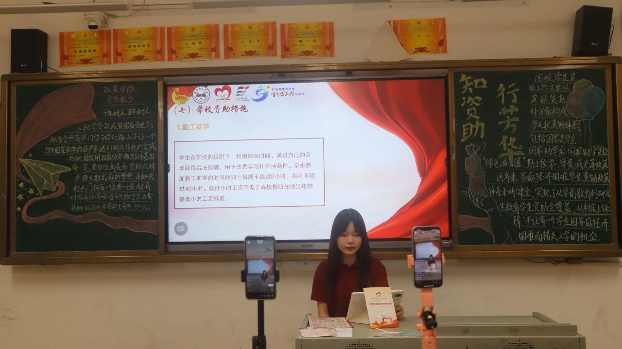 为让更多的学生和家长充分了解和享受到国家资助及助学贷款带来的实际利益,小队成员精心策划了一场别开生面的线上直播活动,于今日下午正式开启。在直播开始前,队员们进行了充分的准备,设计了轮流主持人讲解环节和才艺展示环节,从而确保直播内容的丰富性和趣味性。