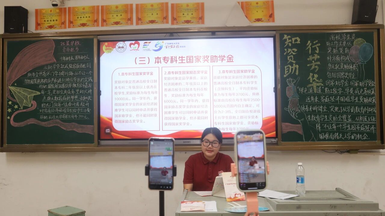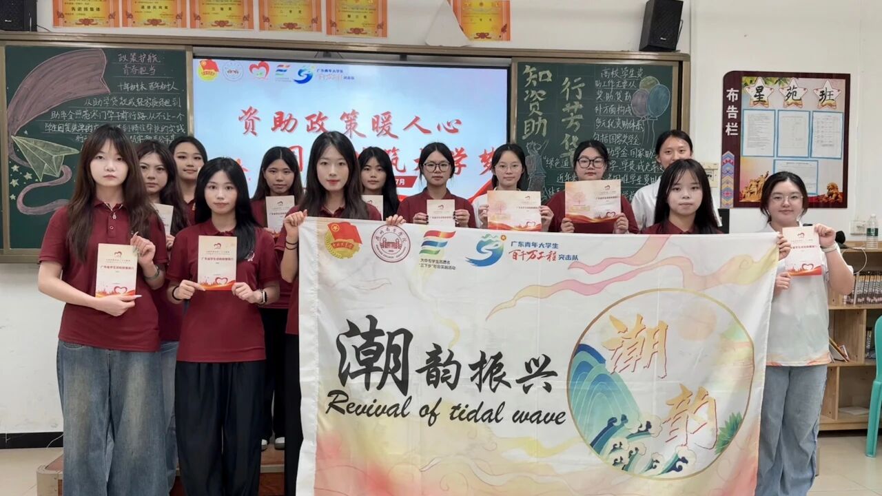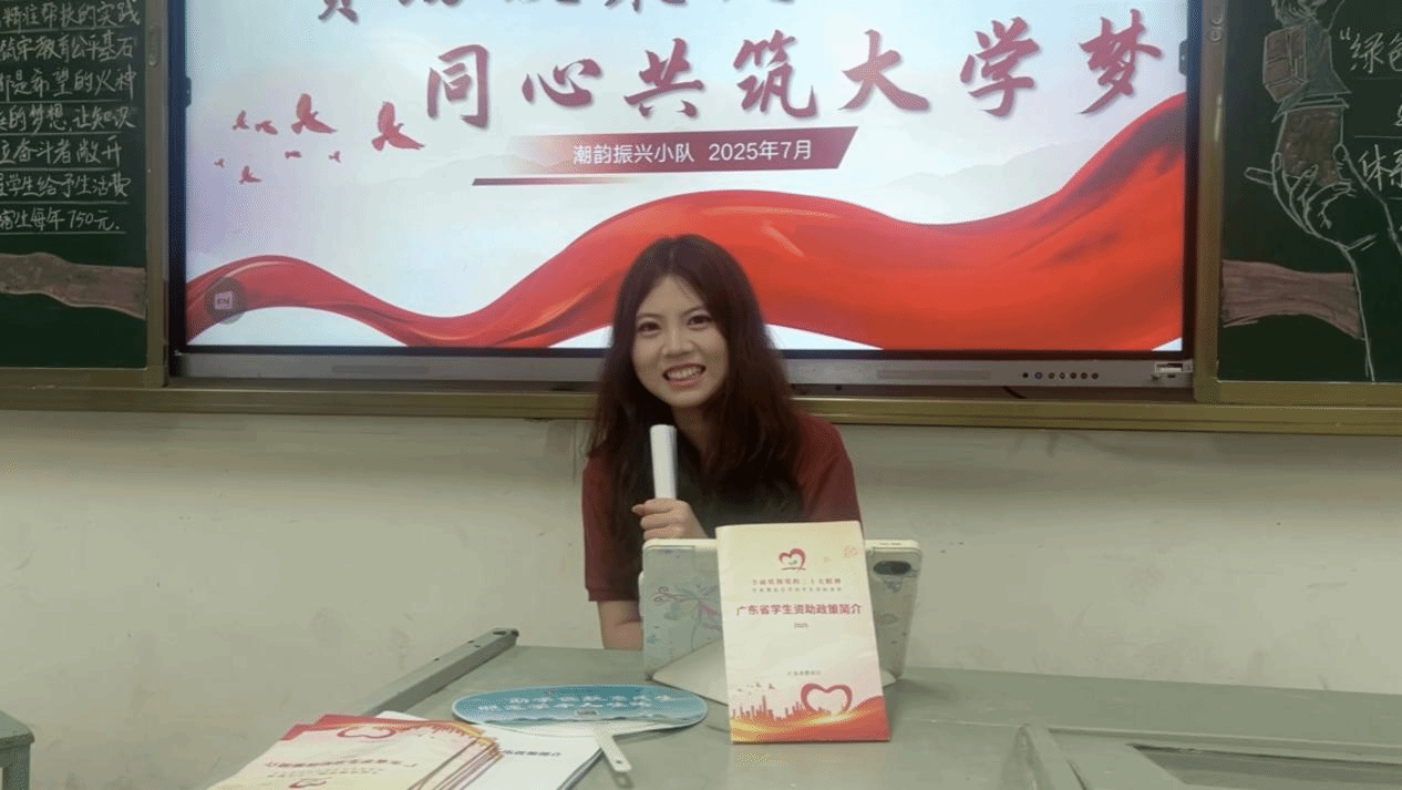在这一天的实践宣传中,从直观的政策宣传黑板画到实时互动的直播,潮韵振兴小队用多元方式将国家资助政策送到更多人眼前。他们让更多的人群在轻松易懂的氛围中读懂政策、用好政策,努力让每一份求学梦想都能被温柔托举。