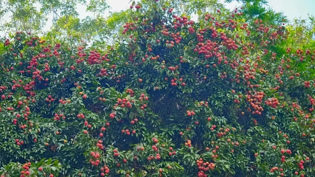 在密石村的荔枝林内,颗颗饱满圆润、色泽诱人的荔枝挂满枝头,宛如红宝石般点缀在绿叶间。拍摄过程中,团队精心选取最佳拍摄角度,从荔枝的生长环境、果实形态、采摘过程等多方面进行细致记录。