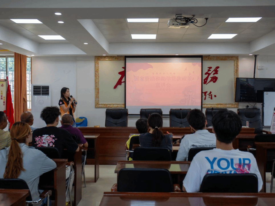 为了能够有效传播资助政策,我们实践队在村委会会议室开展了一场面向村干部的政策宣讲会。以PPT的形式,从资助政策、助学贷款、助学金申请等流程方面向村干部进行讲解与答疑,尽可能让村支书们最大程度地了解和认识国家的资助政策,使得助学政策能够长久有效地辐射到每一个有需要的村民家中。