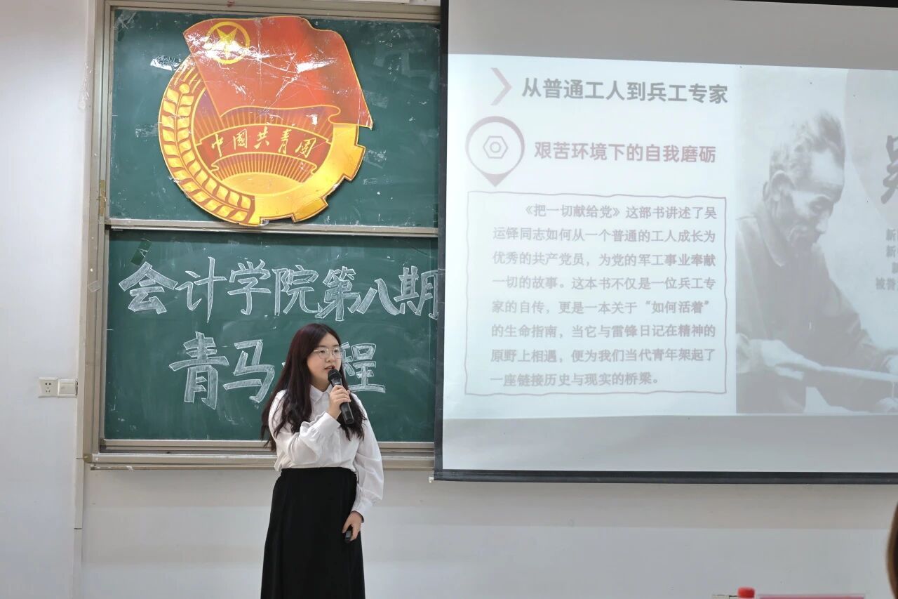 为深化会计学院第八期青马工程学员对红色文化的理解,广州南方学院会计学院团委学生会于2025年3月21日在5教205举办“雷锋精神,书海传薪”红色读书分享会。会计学院团委书记薛梅老师和全体青马工程学员参加了此次活动。