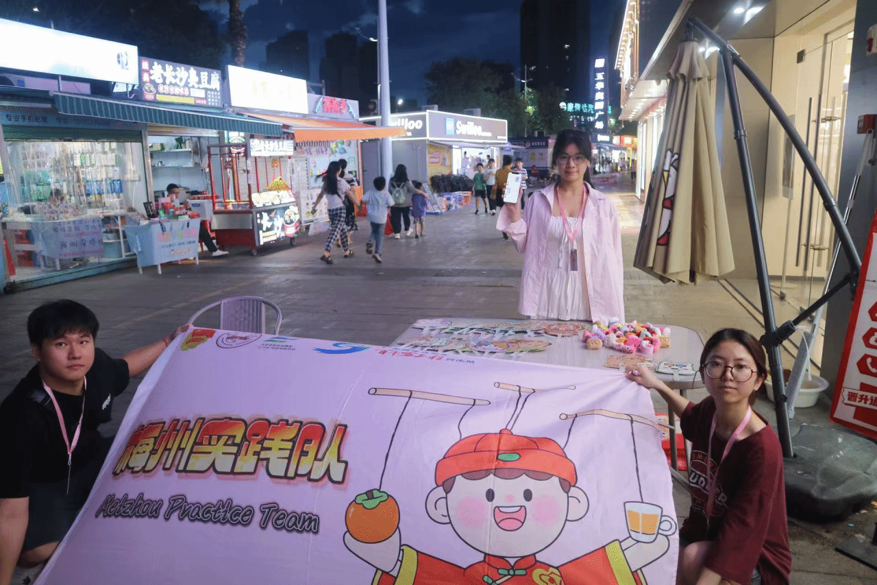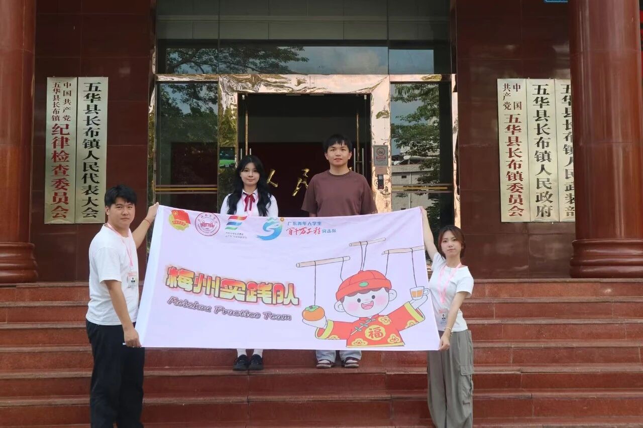 梅州实践队,由李雨媛,林丽媚,曹幸蓝,张佳欣,辜浩杰同学组成的团队,是一支暑期三下乡实践队。怀着对乡村发展的关注与热情,依托各自专业所长,积极探索“非遗+农产品”的创新发展路径,以国家级非遗——五华提线木偶戏为纽带,聚焦梅州市长布镇特色资源,围绕丝苗米、夏威夷坚果、大田柿花等特色农产品推广与非遗文化传承开展工作,通过问卷锁定本地兴趣方向,借助直播、视频、IP打造等方式为农产品提供精准助力,开展实地调研与实践活动。