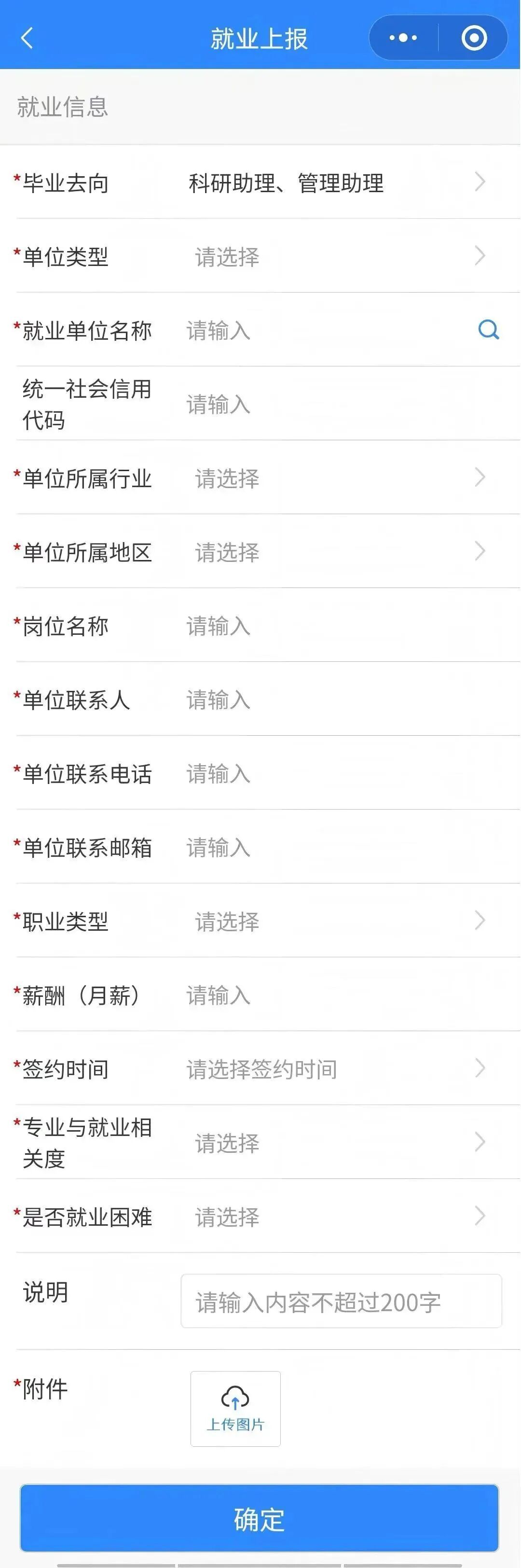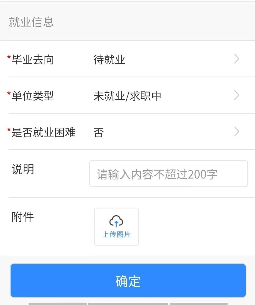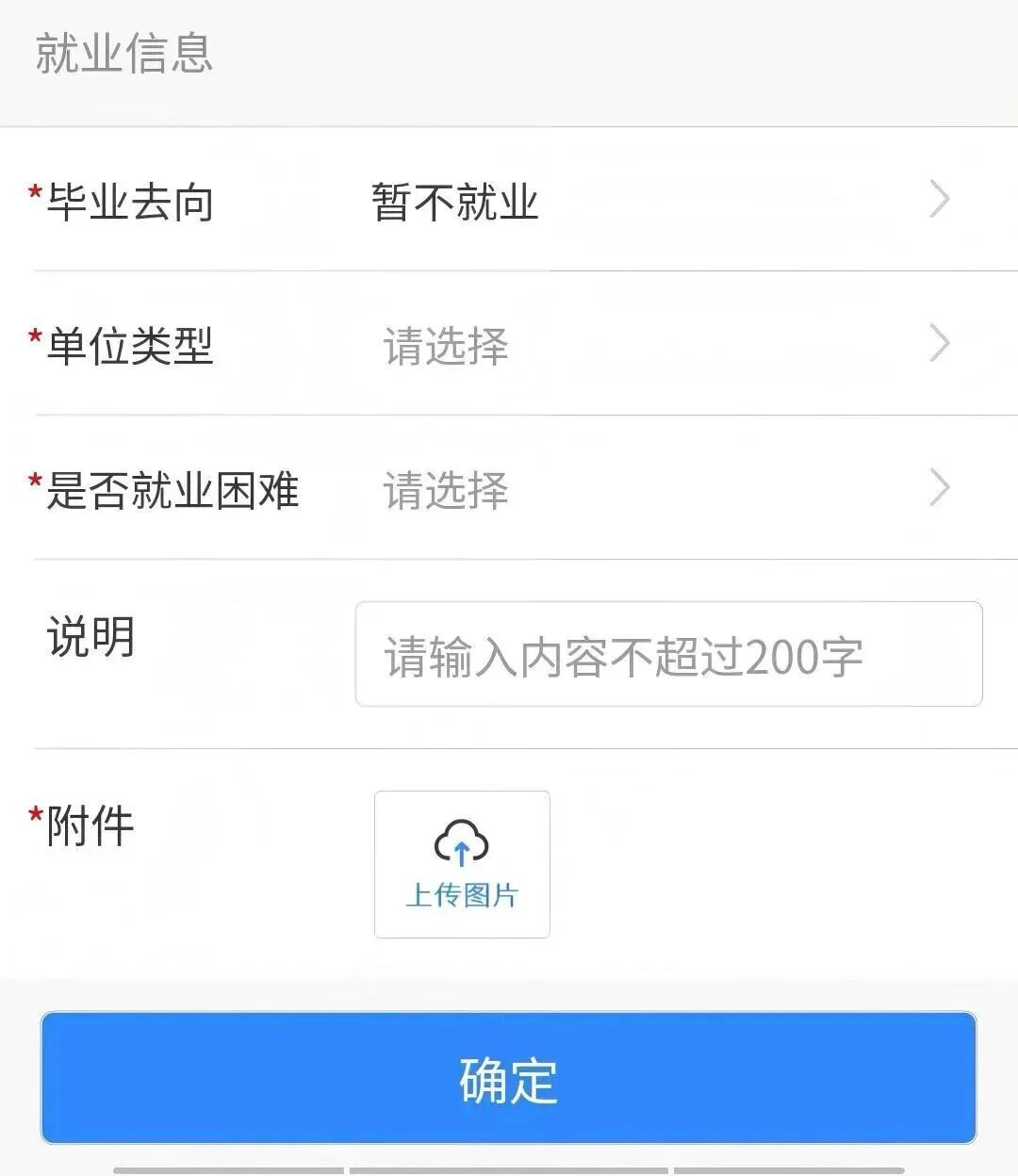 注:后续如与用人单位签订了就业协议或劳动合同,须及时更新去向类型及附件。