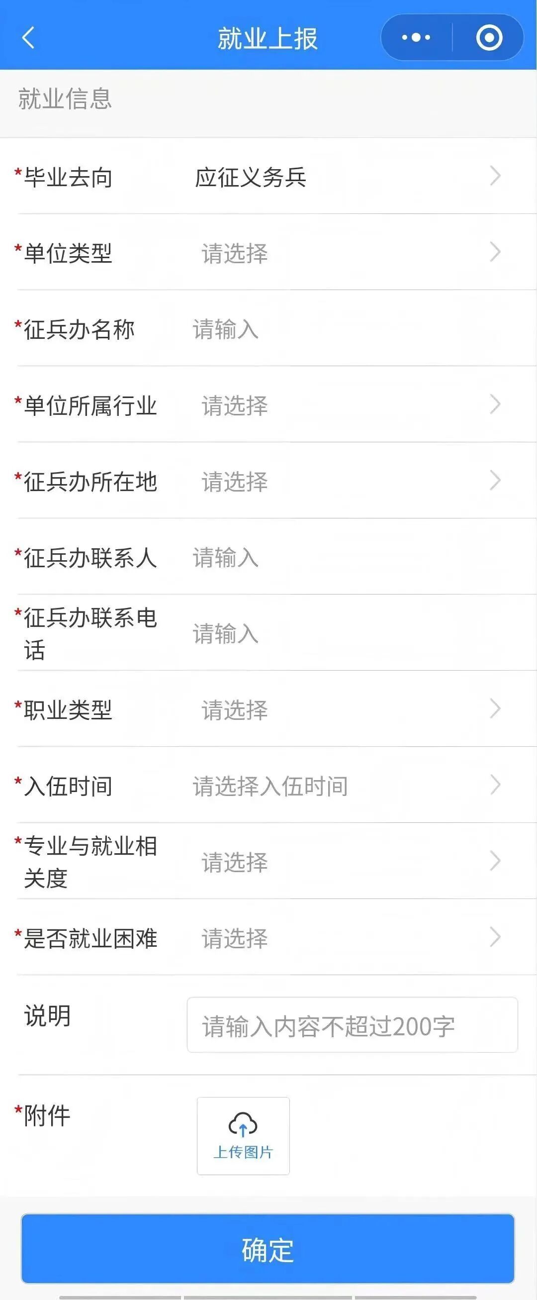 已经被征选义务兵的毕业生,毕业去向类型选择“应征义务兵”。