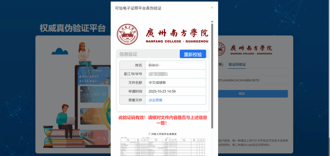 广州南方学院教务处官网(https://jw.nfu.edu.cn)—综合服务平台—打印验证;