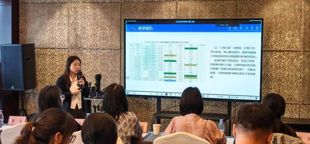 重庆财经学院技术赋能课程改革团队还带来了“查、算、审、溯”人才培养与课程改革的实践经验。团队介绍,围绕“查、算、审、溯”核心培养目标,学校搭建了“2L+P”(EXCEL、SQL、Python)技术赋能平台,并基于OBE 理念设计课程体系,从教学团队组建到课程建设具体实施,形成了一套完整的改革方案。“团队成长过程中,合作交流是关键抓手。”团队成员分享的成长体会,也为我院教师团队建设与课程改革协作提供了启示。