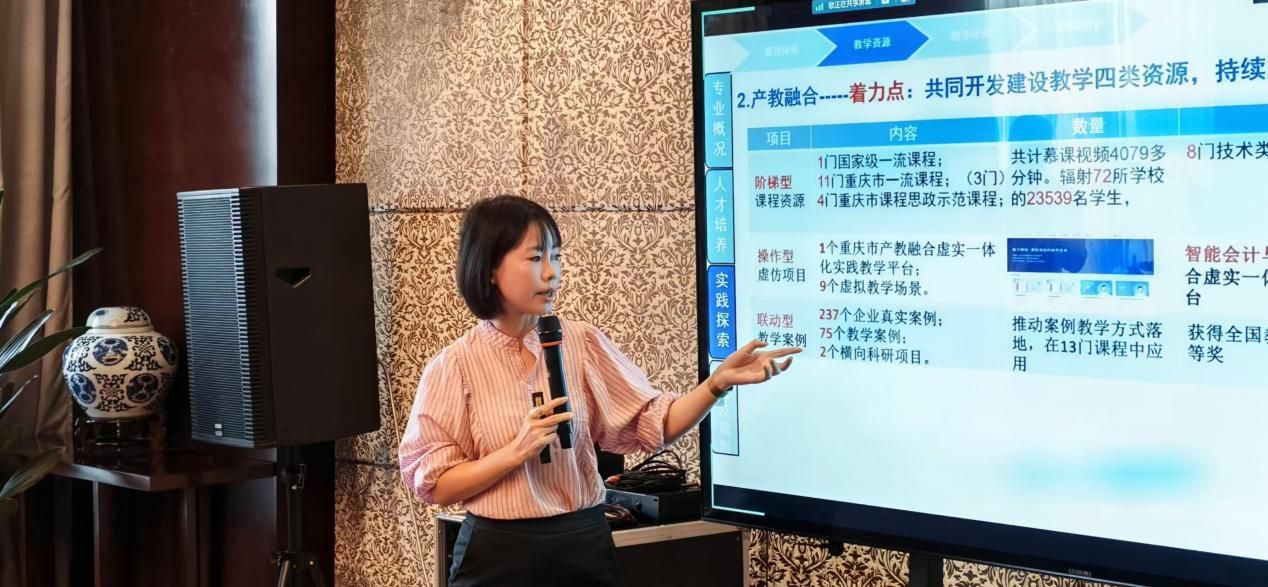 重庆财经学院会计学院李倩教授以“建一流专业,筑金质课程——重庆财经学院的探索和答卷”为主题,聚焦专业建设与课程建设两大核心板块分享实践经验。在专业建设方面,李倩院长围绕“深化产教融合,培养数智化会计人才”的目标,从专业概况、人才培养方案、实践探索、成效及规划四个维度展开,重点介绍了产教融合的“四大关键抓手”。