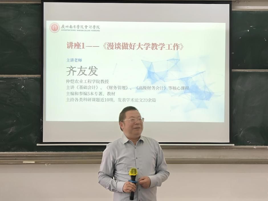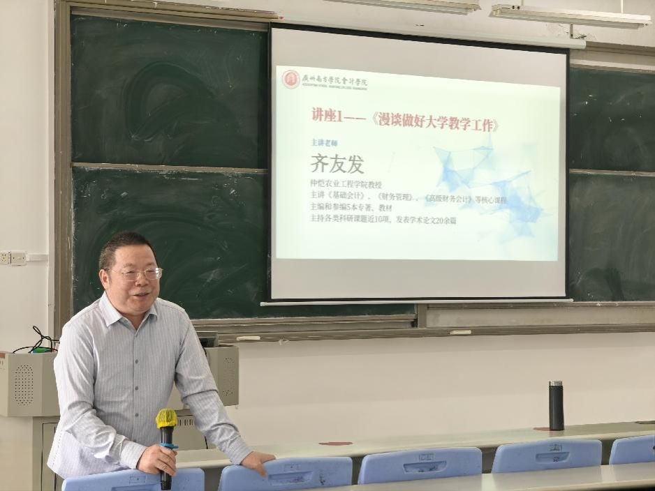 2025年10月22日,广州南方学院会计学院成功举办“新师启航·会计赋能成长论坛”第三期活动。本期论坛特邀中共广州市委党校经济学教研部副主任康达华副教授与我院资深教师齐友发教授担任主讲嘉宾,就大学教学理念与实践、经济管理类课程思政融合路径作专题报告。学院新入职教师、青年教师、学科骨干教师积极参与了本次活动。