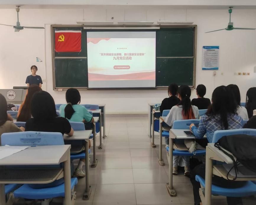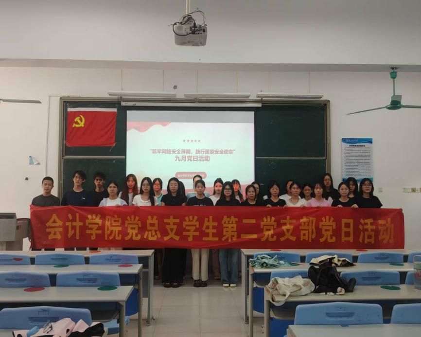 为贯彻习近平总书记关于网络强国建设的主要思想指导,树立正确网络安全观,精准把握网络安全与国家安全的紧密关系,切实提升各位党员以及入党积极分子的网络防范技能,树立底线思维,强化政治意识和大局意识,会计学院学生第四党支部于2025年9月26日下午在5教204教室开展以“筑牢网络安全屏障,践行国家安全使命”为主题的党日活动。