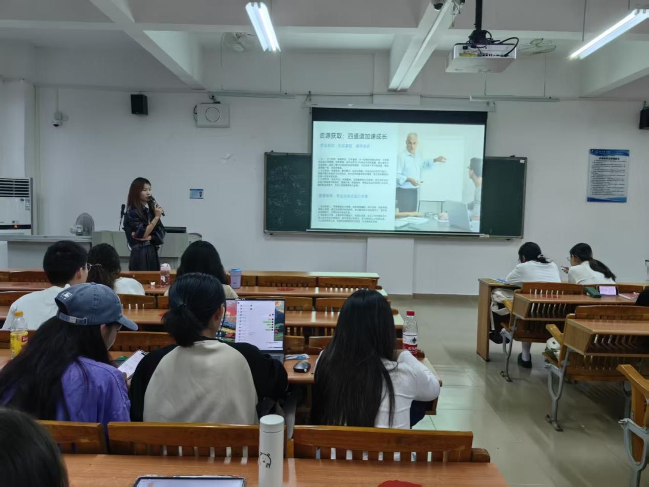 随后,张仕敏老师针对学生最关心的“新人入职后如何快速成长”问题,分享了职场三年进阶规划,第一年需聚焦凭证整理、纳税申报、数据录入等基础工作,熟悉企业财税系统与流程,积累“零差错”的实操经验;第二年需参与税务调研、政策解读、报告初稿撰写,尝试对接客户基础资料,逐步形成“独立处理单一任务”的专业能力;第三年需独立设计简单的财税方案,解答客户疑问、复核风险底稿,逐步承担项目中的核心辅助职责。