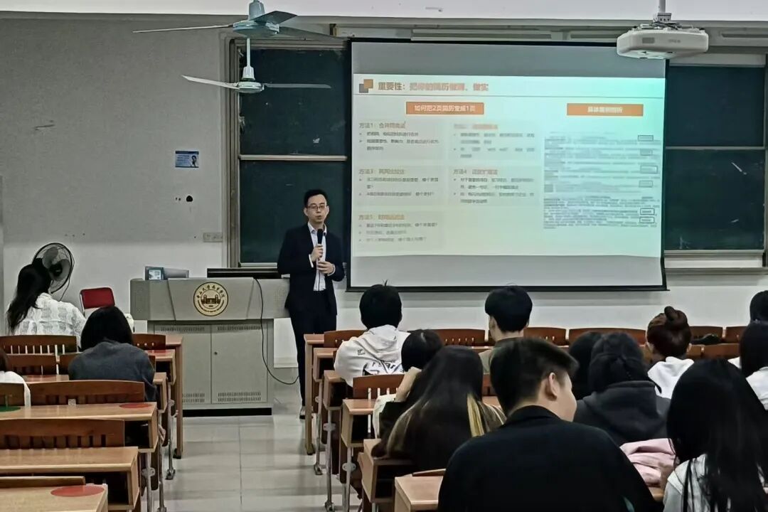 2025年11月2日,广州南方学院2009级校友,10年+集团总部人力资源管理经验,中国人民大学在职研究生,国家高级心理咨询师,国家二级人力资源管理师,中级经济师,广东省人力资源管理协会专家,广州市科技咨询管理协会会员钟阳力带来了实战课:“快人一步---如何拿到令人心动的offer“。本次课程聚焦简历的完整性、重要性、相关性与美观化数字化等关键维度,不仅为应届生提供了从“简历制作”到“职场竞争力提升”的可落地实战方法论,更通过“以终为始”的就业导向,引导学生从大三阶段夯实专业基础、强化实践能力,进一步推动学院学风建设走深走实。活动在5教301举办,现场座无虚席,同学们全程专注互动,展现出广州南方学院学子积极进取、求真务实的优良学风。