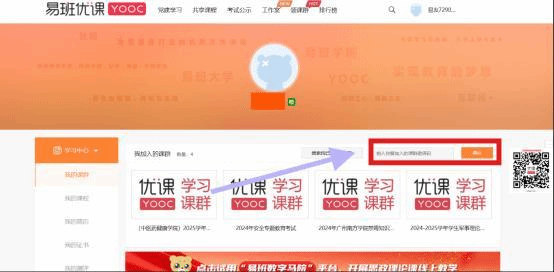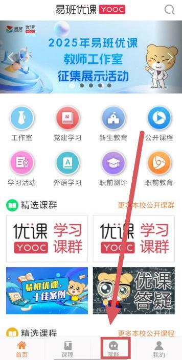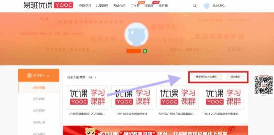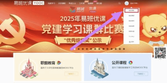 ②用鼠标移动到右上方个人头像处,进入【我的课群】