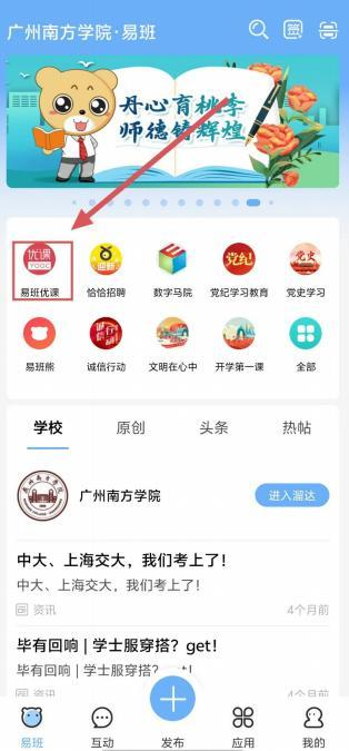 第一步:下载易班app并注册,登录易班账号后,在 APP 界面点击【易班优课】 ,进入优课