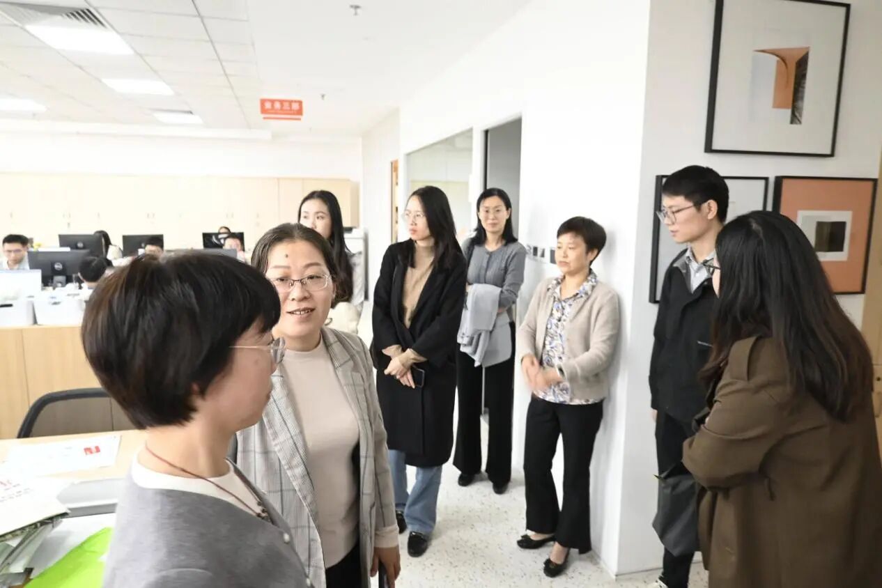 在岭南智华工作人员的带领下,师生代表实地参观了事务所的办公场所、打印室、资料室、档案室、党员活动室等区域。通过沉浸式探访,师生们详细了解了事务所的工作环境、业务流程与企业文化,直观感受了注册会计师、税务师和其他事务所员工的工作状态,进一步深化了对行业的认知与理解。