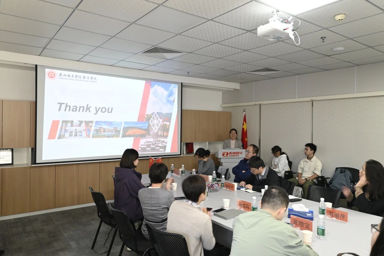 广州南方学院会计学院姚爱丽老师代表学院,向事务所系统介绍了学院最新的发展情况与人才培养特色。她从专业定位、学科排名、师资力量、科研实力、课程建设等方面展开,并介绍了ACCA班、中美121项目,以及注协班、正保班、岭南班、南沙创新创业班、豪美班等特色班级的建设成果。姚爱丽老师表示,学院始终坚持“产教融合、知行合一”的育人理念,近年来在学生就业、考研升学等方面成效显著,毕业生以扎实的专业素养、较强的实践能力获得用人单位广泛认可。希望能够依托岭南智华这一优质实践教学基地,进一步优化实践教学体系,助力学生成长为适应行业发展需求的复合型人才。