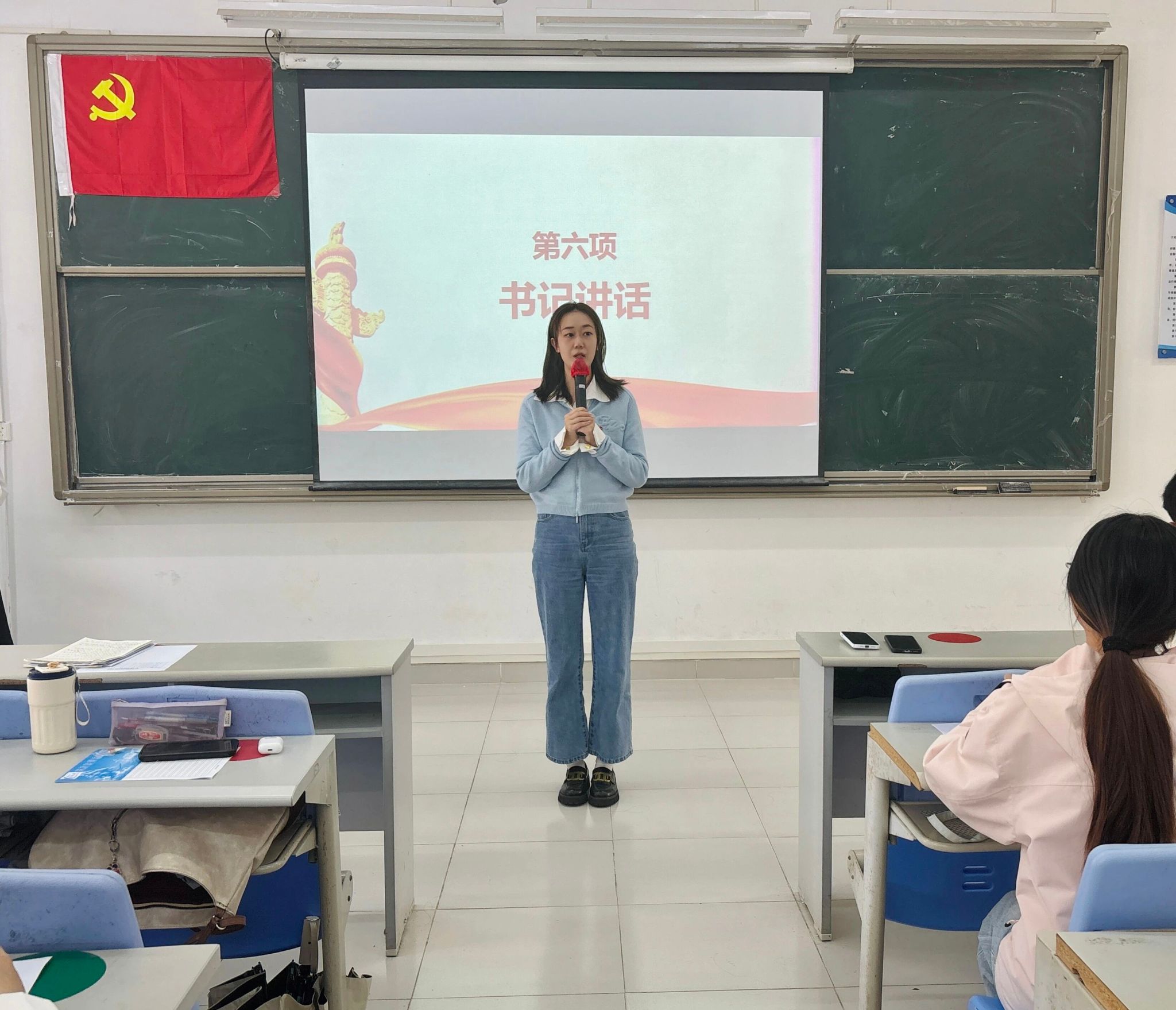 大会第六项议程:会计学院学生第二党支部书记薛梅同志发表讲话。支部书记薛梅同志首先对转预备、转正的同志们表示祝贺,并提出殷切期望,希望各党员同志继续加强理论知识学习,在学习工作中,始终保持热情,不忘初心,求真务实,牢记自身的身份和责任,把党员的先进性、模范性、榜样性体现出来,以实际行动做到组织上入党和思想上入党。