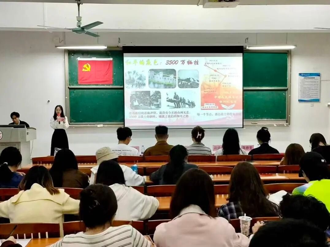 为深入学习贯彻习近平总书记关于铭记历史、缅怀先烈、珍爱和平、开创未来的重要论述,持续弘扬伟大抗战精神与反法西斯精神,广州南方学院会计学院党总支于11月9日晚上在5教205教室举行了“铁血铸丰碑,初心映山河”PPT主题宣讲竞赛活动。会计学院学工办主任兼学生第二党支部书记薛梅老师,会计学院教工党支部副书记陈晓蔚老师,会计学院教工党支部青年委员陈静雯老师,会计学院团委指导老师赵帅老师,会计学院辅导员叶张老师出席本次活动。