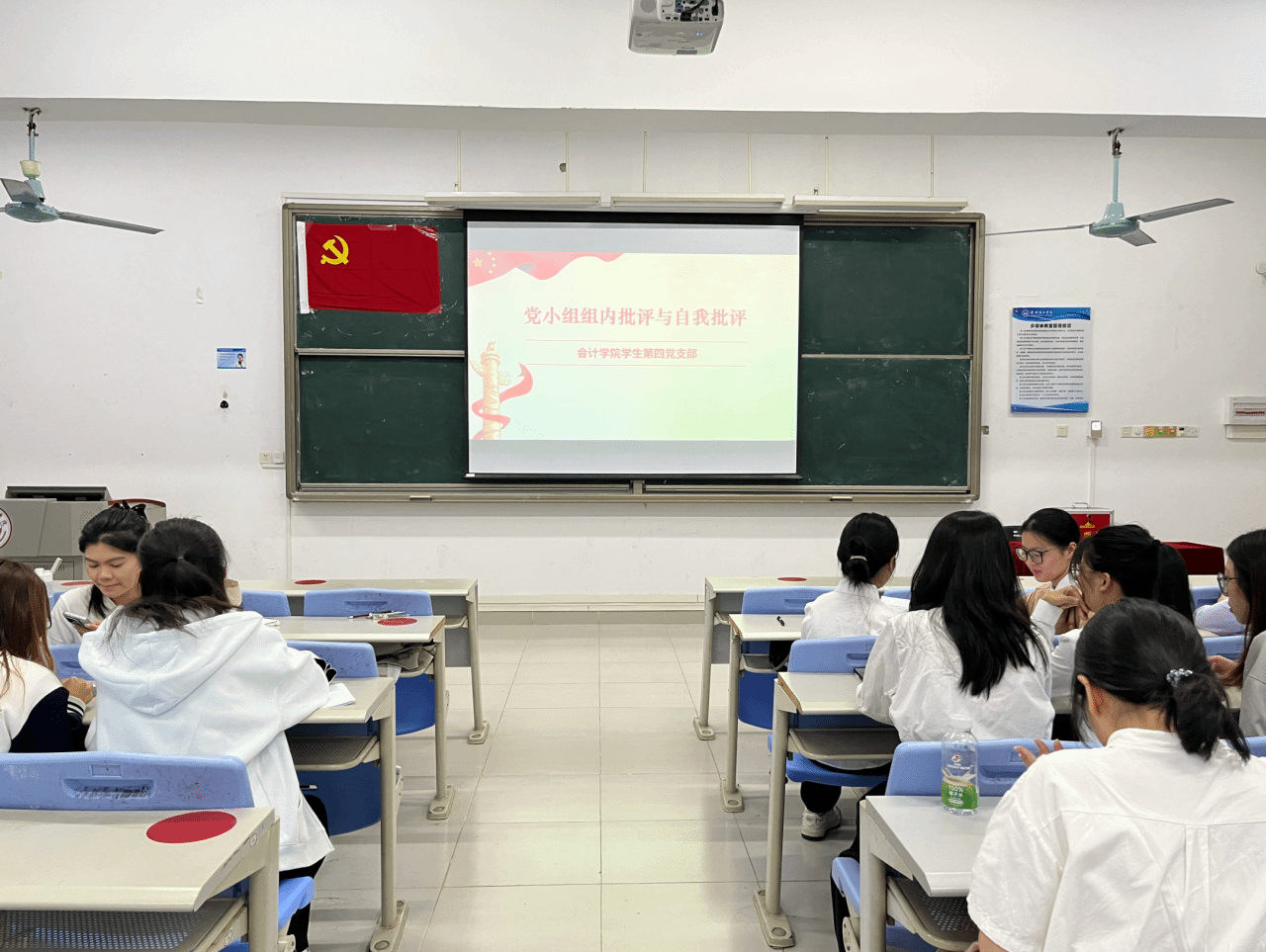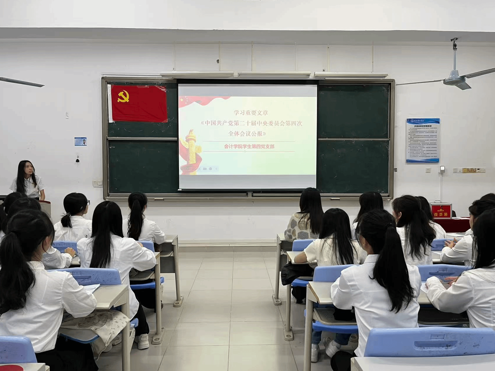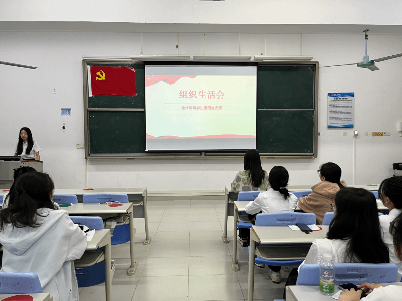 为进一步加强党员队伍建设,严把党员“入口关”与“质量关”,会计学院学生第四党支部于2025年11月12日下午在5教203教室召开2025年秋季通表大会暨组织生活会。会计学院学生第四党支部书记陈静菲同志及全体学生党员、预备党员、拟接收为预备党员的发展对象参与本次会议。