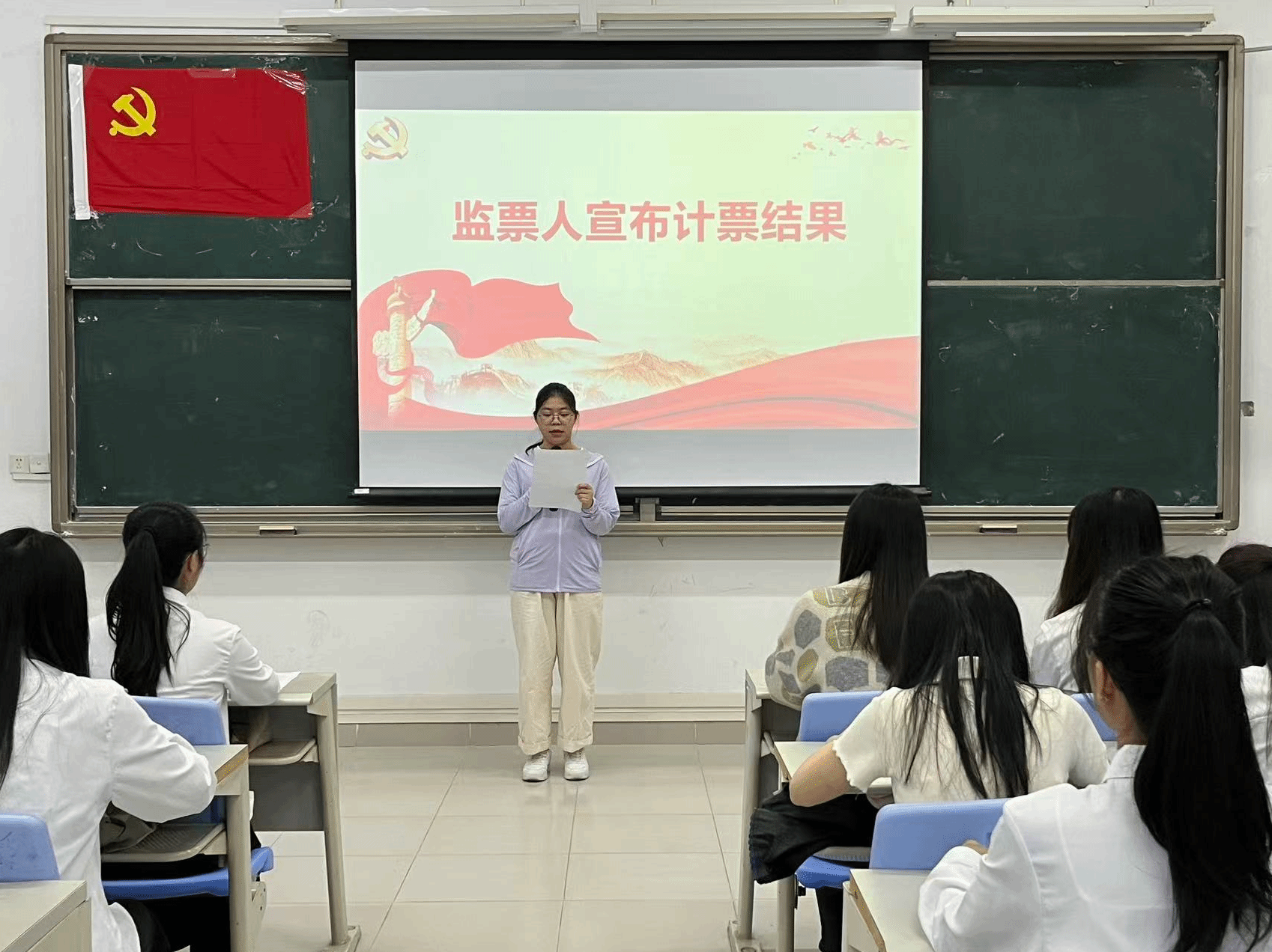 经过与会正式党员的讨论和无记名投票表决,由监票人周乐棋同志宣布计票结果。各发展对象和预备党员的表决结果均为赞成人数超过应到会有表决权党员的半数以上,支部一致决定同意接收发展对象李霖芳等4名同志顺利转为中共预备党员,预备党员钟慧静等8名同志顺利转为中共正式党员。