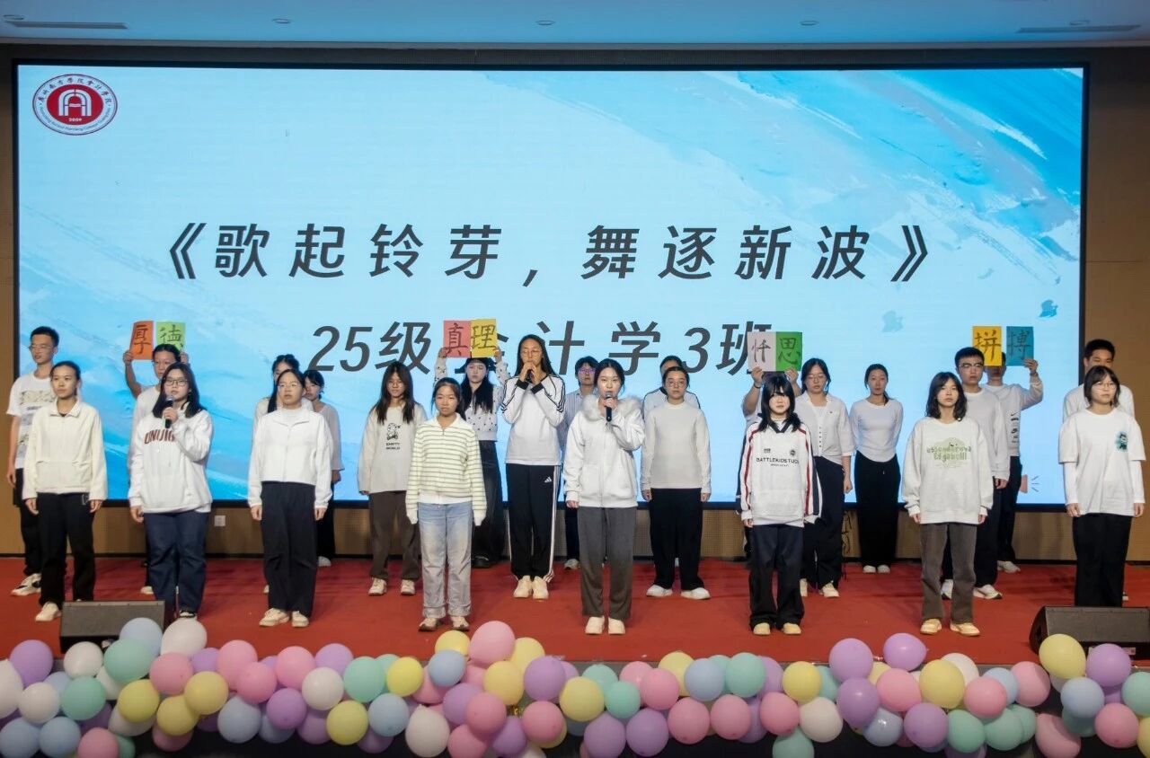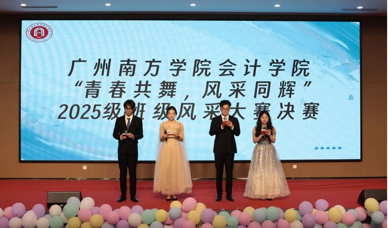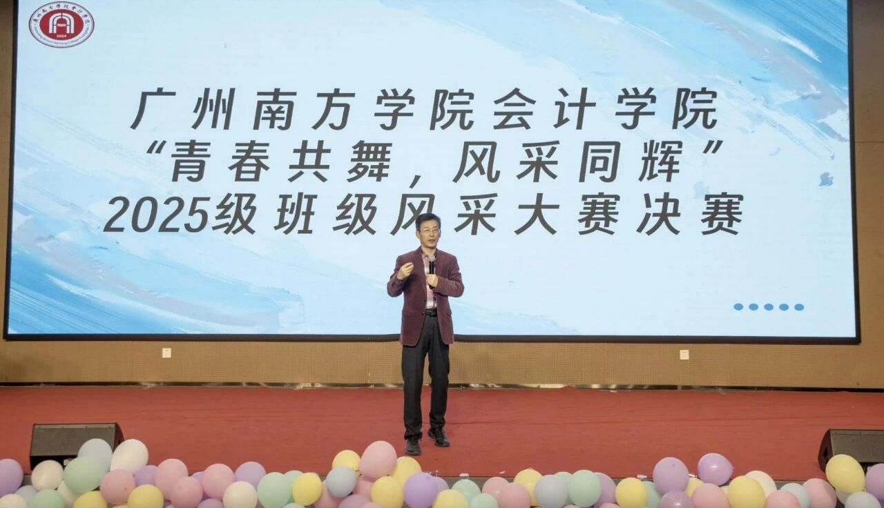 为涵养优良学风,彰显班级风采,展现会院学子昂扬向上的精神风貌。2025年11月21日,广州南方学院会计学院“青春共舞,风采同辉”2025级班级风采大赛决赛在小礼堂成功举行。莅临本次活动的嘉宾有广州南方学院学生处处长朱文山,会计学院党总支书记、副院长董成杰、党总支副书记陈宇桂、院长助理王家碧、学生工作办公室主任薛梅,广州南方学院学生处刘紫燕、杨伟明、刘盼盼、舒昳颖、谈俊延,会计学院2025级成长导师何映泽、曹学潜、胡宽、康良福、倪湧、曾佩慈、王永康,专职辅导员王力群、叶张、陈晓蔚、梁雨琪、陈静雯、朱小丽。比赛特邀广州南方学院艺术学院教师杨艺莹、会计学院2015级校友王思琦、广州逸仙教育市场运营经理张姗姗、会计学院升学指导中心李家辉、团委指导老师赵帅及学生代表何昊怡、张译方担任评委。