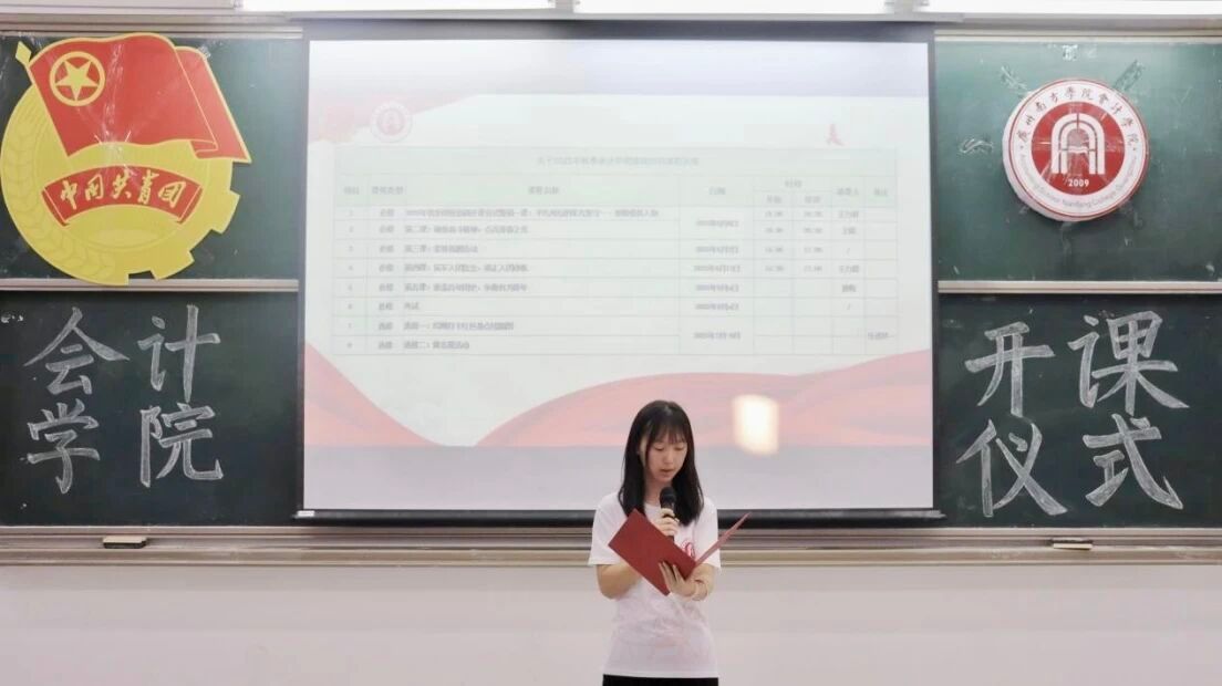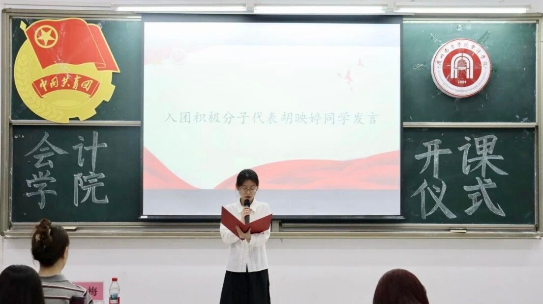 2025年6月4日,广州南方学院会计学院团委举行2025年秋季团校培训开课仪式,参加本次开课仪式的有会计学院团委书记薛梅老师、专职辅导员王力群老师、团委学生兼职副书记冼炜姗同学、学生会执行主席何昊怡同学以及全体入团积极分子。仪式在庄严的中华人民共和国国歌声中拉开帷幕。