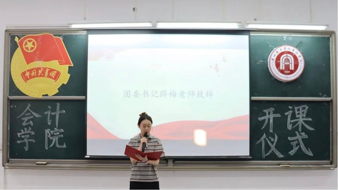 会计学院团委书记薛梅老师为本次开课仪式致辞。她强调,团校作为共青团组织培养团员青年的重要阵地,每一次团校培训对于入团积极分子提高思想觉悟、提升综合素质都有着关键作用,希望各位入团积极分子能够端正学习态度,严格遵守团校规定,以最饱满的热忱投入其中,成为有理想、敢担当、能吃苦、肯奋斗的新时代青年。