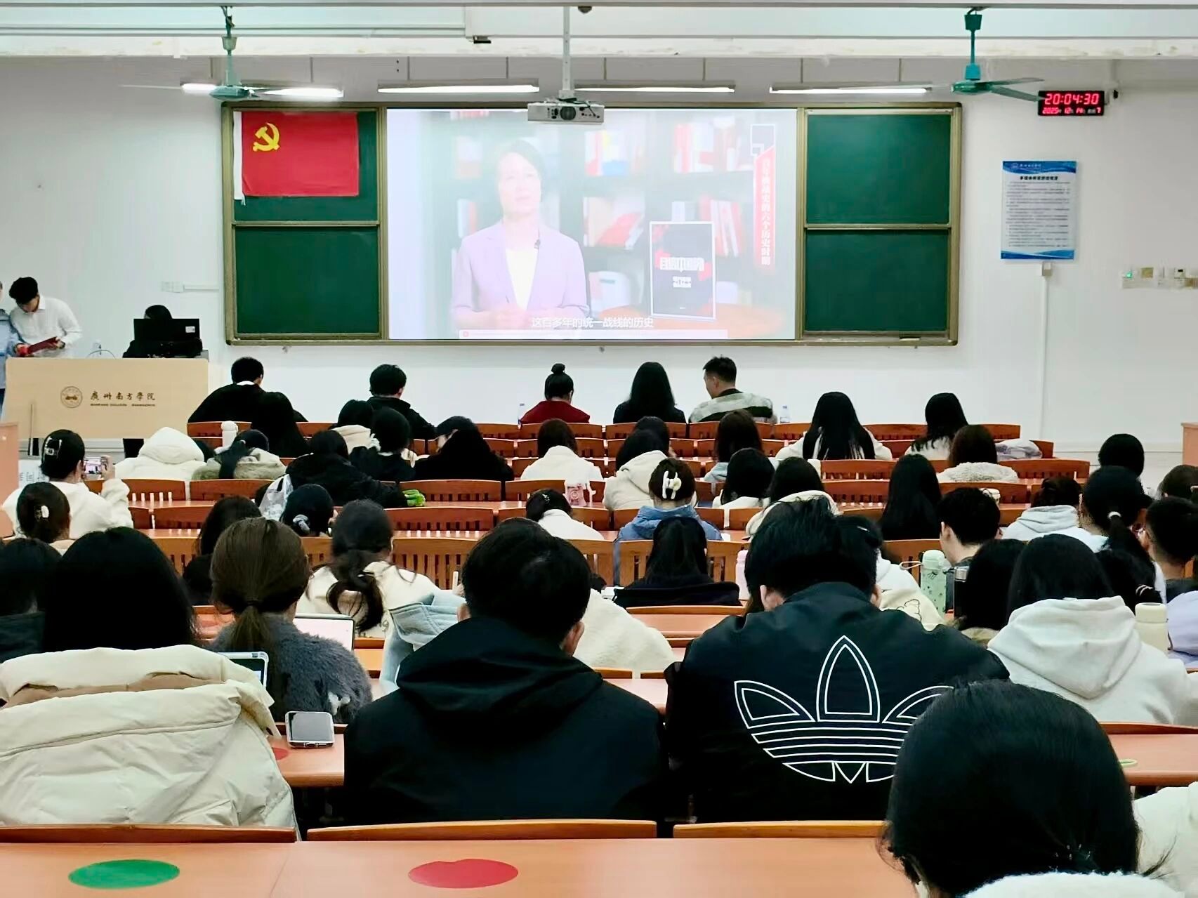 随后,全体师生共同观看视频《〈自信中国说〉凝聚起全民族抗战的深厚伟力》,重温抗战时期中国共产党建立全民族统一战线的壮阔历程。视频结束后,现场观众分享观看感受,大家结合视频内容与自身感悟,畅谈对党的历史使命与初心担当的理解,进一步凝聚了党史学习教育的思想共识,引发深层共鸣。