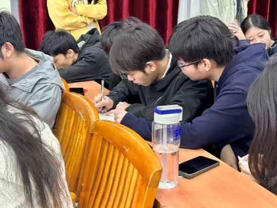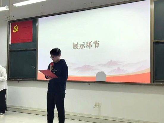 比赛第三部分“共笔生花”共分为撰写与展示两个环节,各队伍围绕“中国共产党的革命道路与自我革新”主题,在限定时间内分工撰写党史论文。随后,代表队代表上台阐述论文核心观点,从理论梳理、现实关联到青春践行,思路清晰、论述有力。评委与观众从思想内容、逻辑结构等方面进行综合评议,确保评选专业公正。