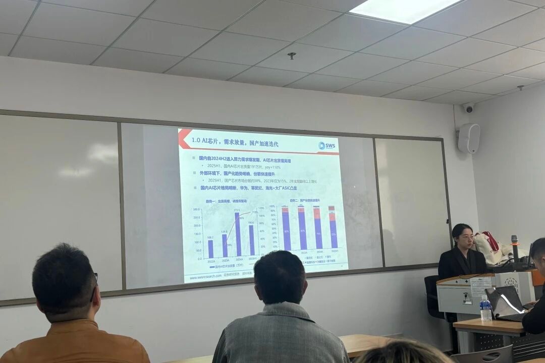讲座伊始,申万宏源研究所TMT行业分析师崔航便以线上形式带来重磅分享。他聚焦AI产业的算力、模型、应用三大核心维度,用清晰易懂的逻辑勾勒出2025-2026年行业发展全景。他提到,2025年是国产算力产业化的关键元年,国产AI芯片正从 “可用”稳步迈向“好用”,超节点建设更彰显出强劲的国产工程实力;尽管大模型整体迭代节奏放缓,但中美之间的技术差距正在快速缩小,预计2026年国产模型有望在部分细分领域实现突破超越。同时,他还深入剖析了AI技术在多领域的应用落地现状与潜在风险,让同学们直观感受到前沿产业与财经领域的深度联动,也切实体会到校企合作搭建的桥梁,是如何让行业前沿知识精准触达课堂的。