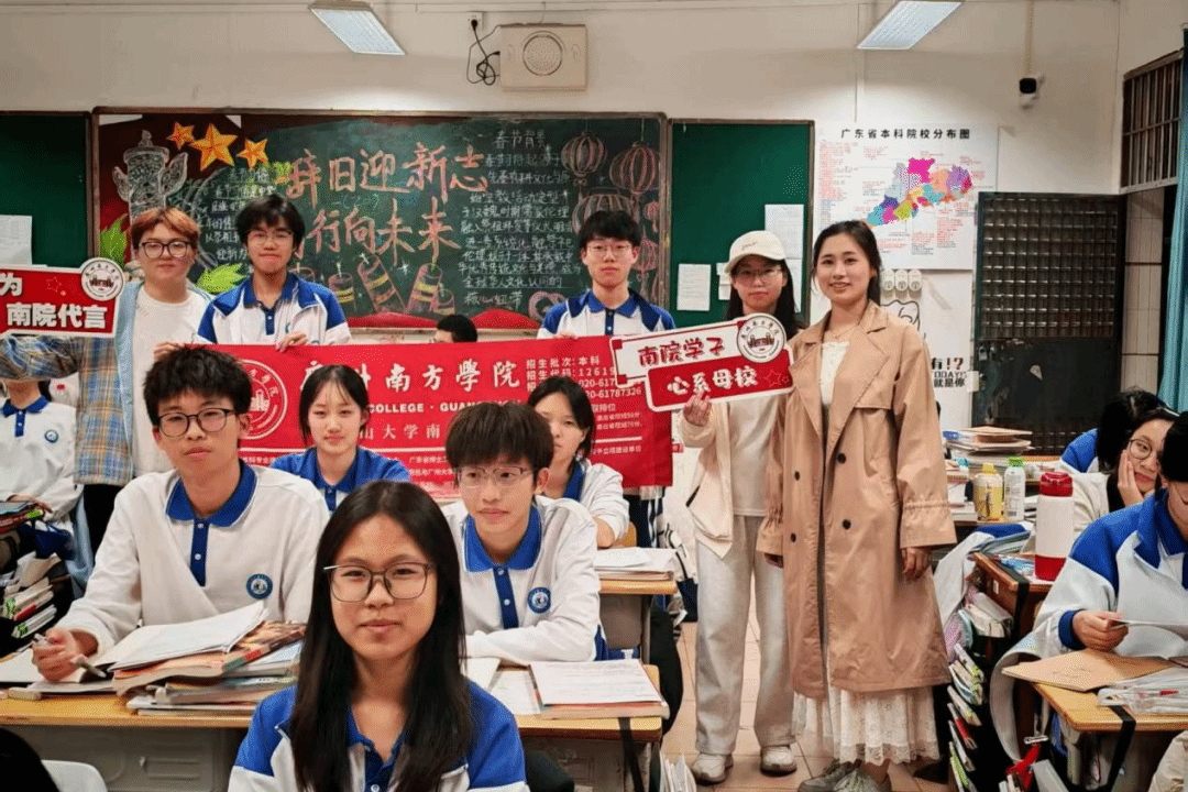 这场宣讲,对我院学子们而言更是一次“感恩回馈”之旅。活动前后,他们特意探望高中班主任与任课老师,分享自己在广州南方学院的成长,每一份变化都是对母校培育的最好答卷。离开时,他们带走了学弟学妹的热情与信任,也留下了对母校的祝福、对“传承”的理解。正如江健同学所说,“我们为学弟学妹们带去些许光亮,帮他们勾勒未来可能的轮廓;而他们,用他们的热情与信任,给予我们力量,让我们重新审视自己走过的路,愈发清晰地看到那些经历如何塑造了今天的我们”。