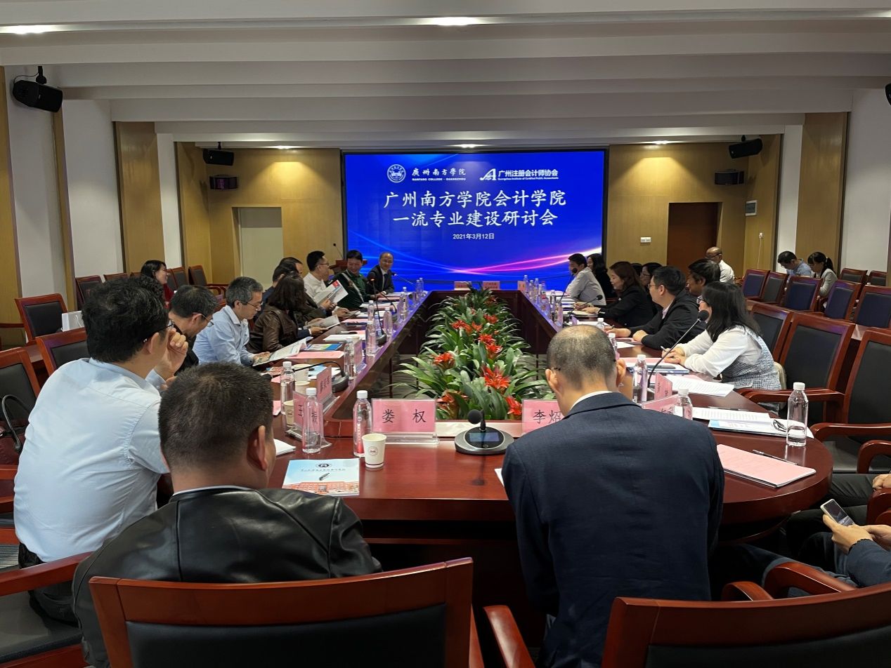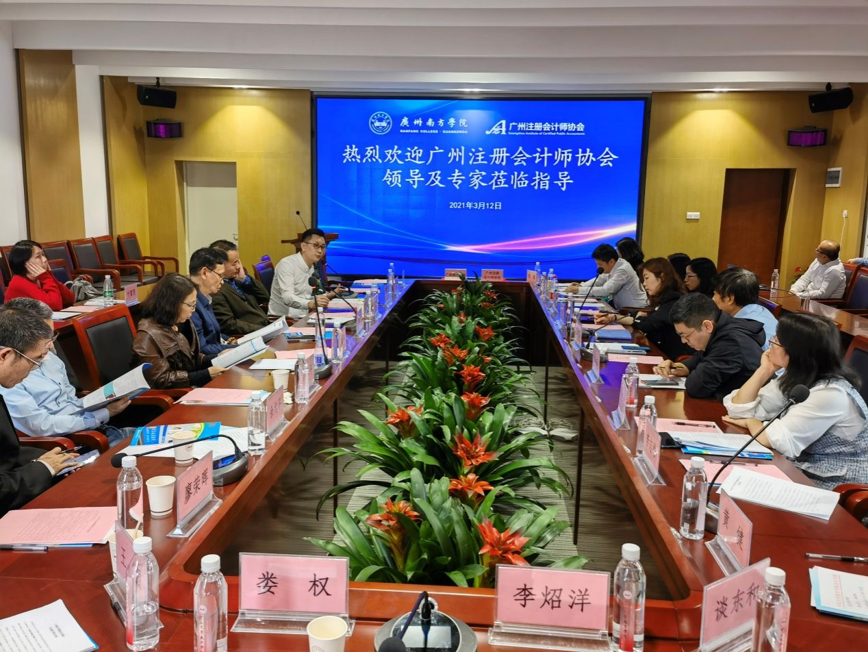 3月12日下午,广州南方学院和广州注册会计师协会(以下简称“广州注协”)关于会计学一流专业建设研讨会暨“注协班”签约仪式在新综合楼第一会议室顺利举行。广州注协前任秘书长、高级顾问蒋建平、副秘书长李泳茹、主任罗维,广州大学夏明会教授、暨南大学石水平教授等多名专家、实务界精英,我校副校长黄南松,我院执行院长卫建国、副院长董成杰、张媛、专职教师何沁蔚等出席了会议。