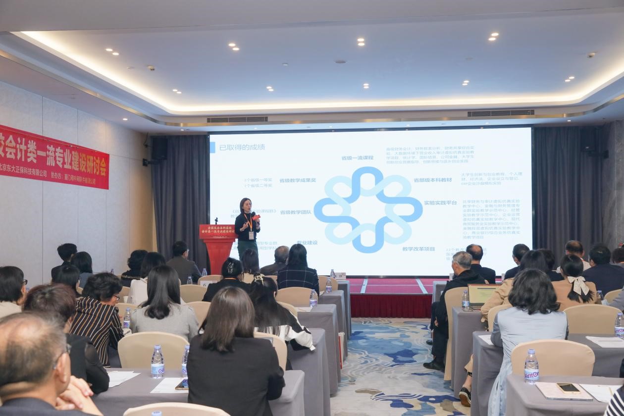 广州南方学院常务副校长唐燕出席并致辞。她指出,作为我国高等教育事业重要力量的民办本科院校,在承担一流本科专业建设双万计划中,发挥着不可或缺的重要作用。她希望各位专家对我校的会计学科专业建设、教育教学管理给予悉心的指导,加强合作,共谋发展,携手奋进,共同推进会计类一流专业建设的创新和发展,为会计学科建设做出更大的贡献。