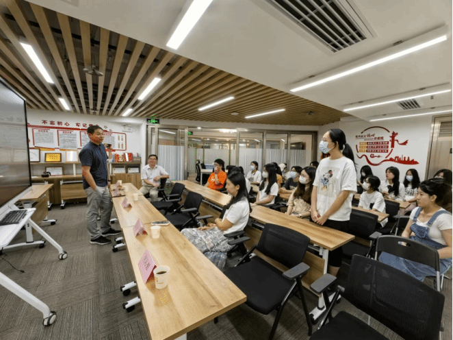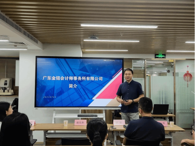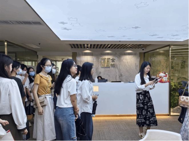 首先,广东金铭会计师事务所谈东和、行政部主管刘茜带领同学们参观了事务所的内部工作环境,分享了相关案例以及个人想法。希望能为同学们对注册会计师行业的理解更为深刻。
