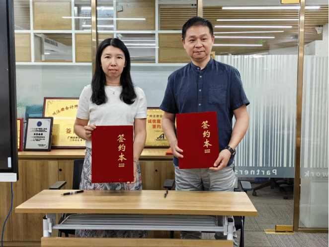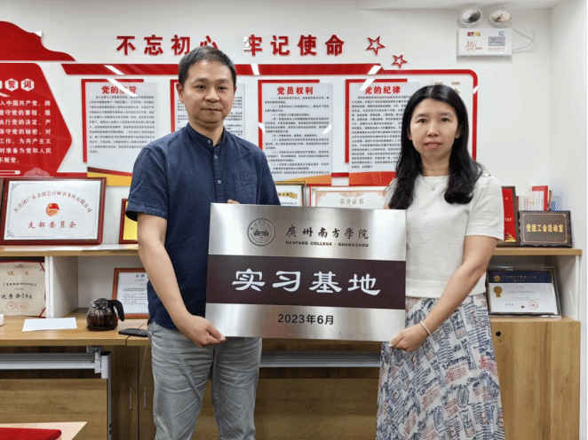 在签约与授牌仪式,金迪老师与谈东和所长分别代表各自单位签署了合作协议,并授予广东金铭会计师事务所“广州南方学院实习基地”牌匾。