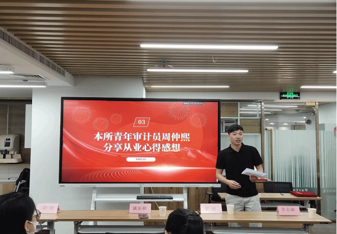 然后,广东金铭会计师事务所高级审计助理周仲熙进行了从业心得的分享,他通过幽默诙谐的语言,以自身的审计经历向同学们讲述了他不同时段对审计理解的转变,通过他的工作经历告诉同学们要注重过程,需要我们克服困难走出舒适圈,要多去沟通,形成审计框架及工作思路。